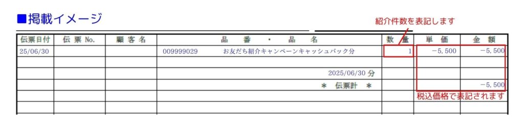 特典製品代金のキャッシュバックを、売掛請求書での相殺にて対応させていただいているためです 。ご了承いただけますと幸いです。