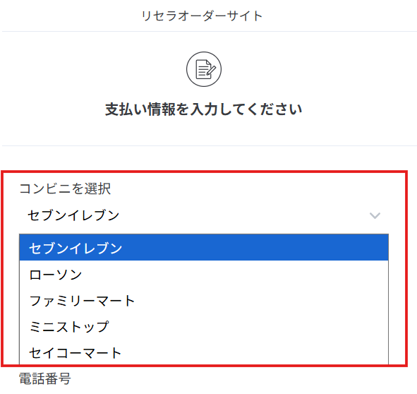 ⑩ 支払いをするコンビニを選択
