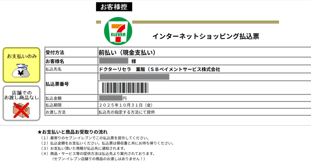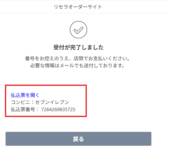 ※例:セブンイレブンであればメールに届いた払込票バーコードをレジで提示する